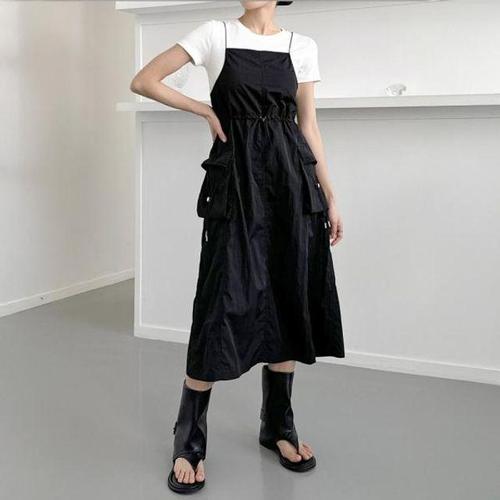 핫핑 [바스락/장마템] 섀도우 나일론 멜빵 롱원피스
