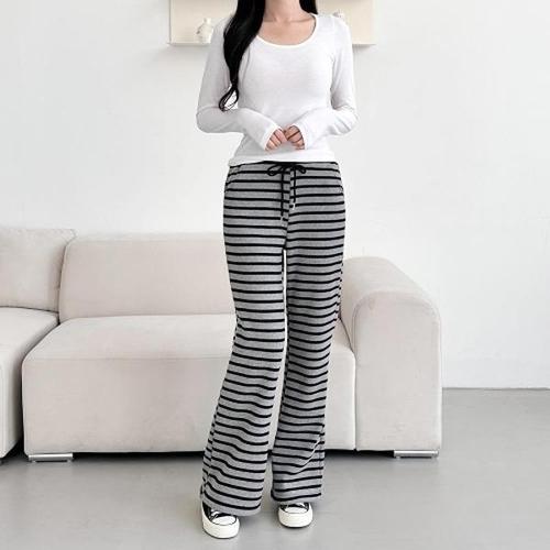 [다잇템][다잇템] 여성 줄무늬 편한 면혼방 캐쥬얼 나팔 고무줄 팬츠_23776222_588872