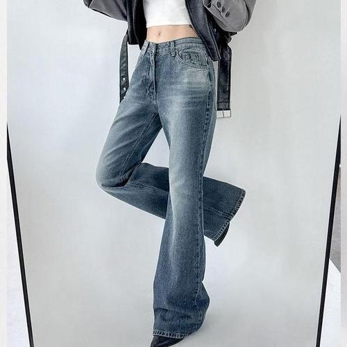 [다잇템_패션]여자 FW 캣워싱 논스판 나팔 세미 청바지