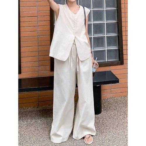 [예쎄][예쎄] (2종SET)린넨 민소매 블라우스+린넨 와이드 팬츠(S3MSE401A)