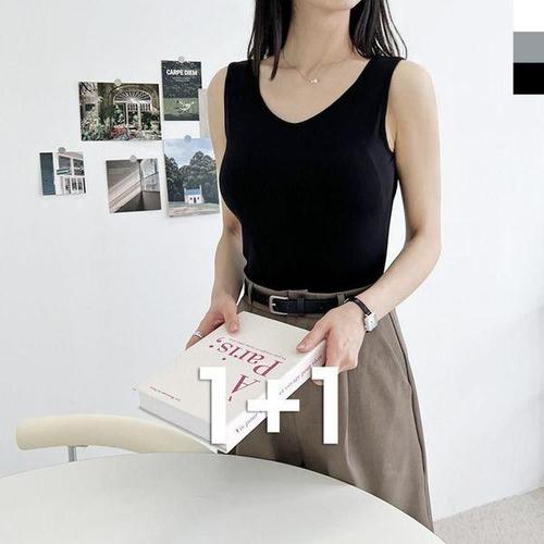 난닝구 여성용 민코퍼 골지 캡 브이넥 나시