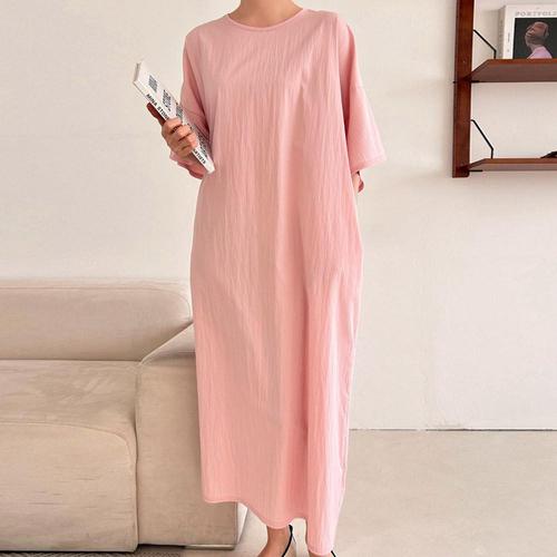 글램핏 / 찰랑 여리 루즈핏 라운드 날개 반팔 맥시 롱 원피스 3컬러