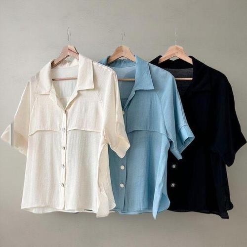 [옷자락]여자 라카넥 날개프릴 반팔 블라우스