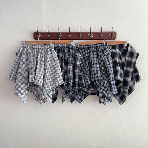 [다잇템]여자 셔츠치마 격자 키치 로프 미니스커트