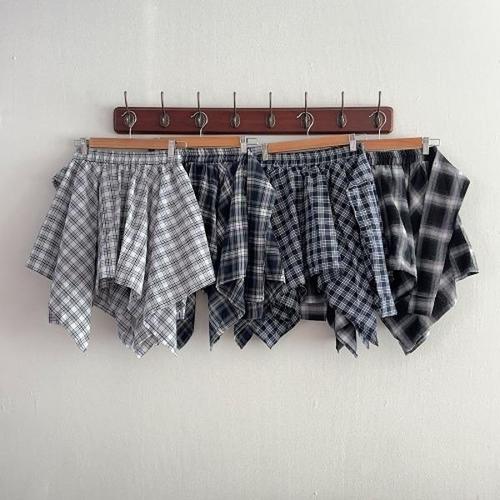 [옷자락]여자 셔츠치마 체크 플레어 매듭 키치 밴딩 미니스커트