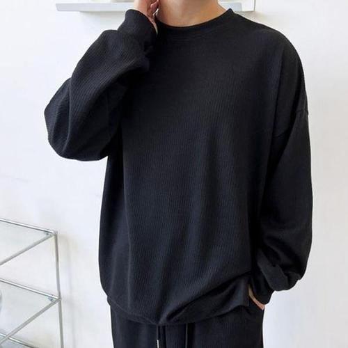 1+1/2P 세트 맨투맨 긴팔 티셔츠 남성용 라운드 티 루즈핏 심플 봄 가을 이너티 빅사이즈 남성상의 D99U