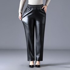 6xl까지 중년여성 엄마바지 기모 가죽 바지 추동 하이웨스트 날씬해 보이는 밴딩 스판 와이드 팬츠 긴바지 데일리룩 빅사이즈