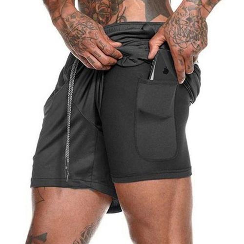 [에이치플러스몰]남성 헬스 스포츠 러닝 내장 포켓 레깅스 2in1팬츠