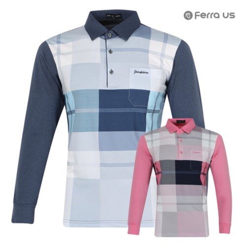 [기타브랜드]남성 봄 여름 골프웨어 골프 배색 카라 긴팔 티셔츠