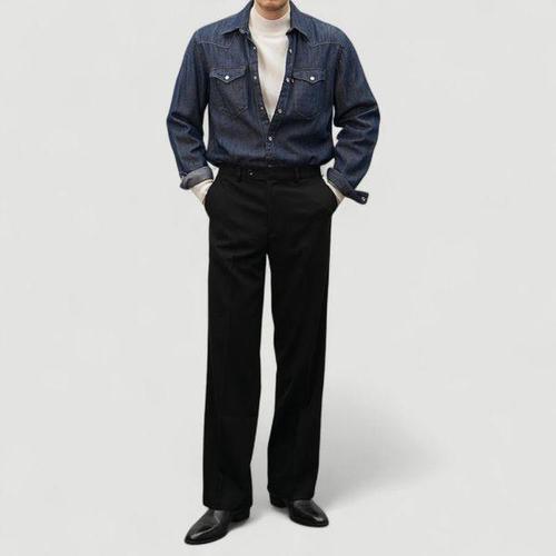 [옷자락] 남자 비조버튼 세미 플레어 울 스판 슬랙스 정장 바지