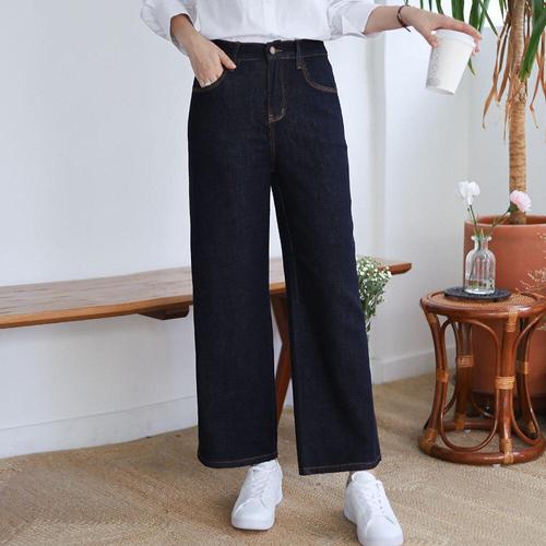 [옷자락][시즌오프]스티치 통 와이드핏 반밴딩 가을옷 스판 청바지_5