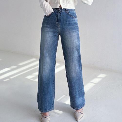 [옷자락] [시즌오프]통일자핏 워싱 봄데님 히든밴딩 스판 면 청바지_5