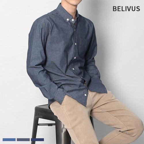 뱅뱅 HC04 가을 남성 포켓스판 긴팔 청남방 NSKD60