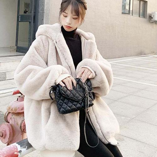 [셀럽하우스]풍성한 BTMJ1734 코트 부드러운 퍼 아우터 겨울 보온 아우터