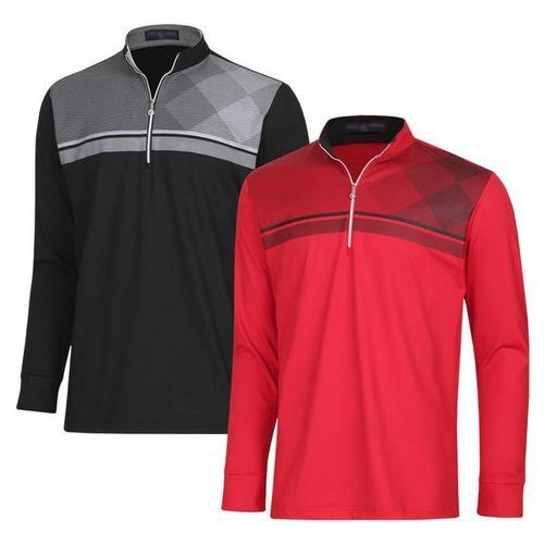 [에이치플러스몰]중년 남성 골프웨어 긴팔 반집업 티셔츠 경량