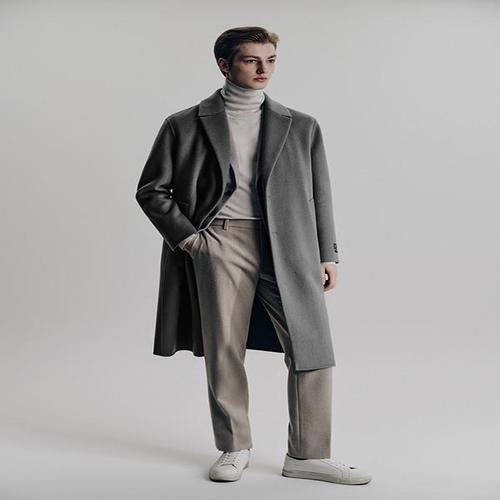 [트루젠]남성 구스다운 조끼 내피형 울 캐시미어 혼방 핸드메이드 겨울 기장긴 롱 코트 총장 110cm