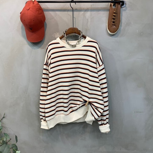 [리빌모아]남자 오버핏 스트라이프 라운드 단가라 맨투맨 OC-TSA-SWFGY5BR