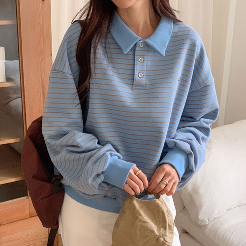 허그허그 / 카라 스트라이프 포인트 맨투맨