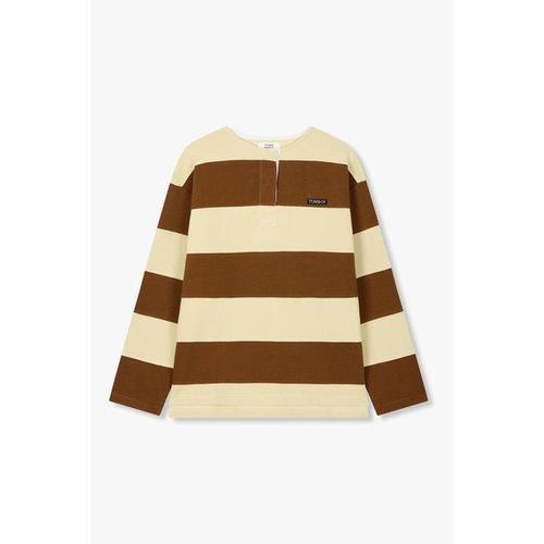 [미라클세븐]피케티 하프집업 시보리 오버핏 스트라이프맨투맨 럭비