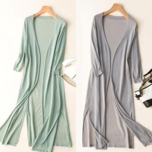 [에이치플러스몰]롱가디건 브이넥 7부카디건 코트형