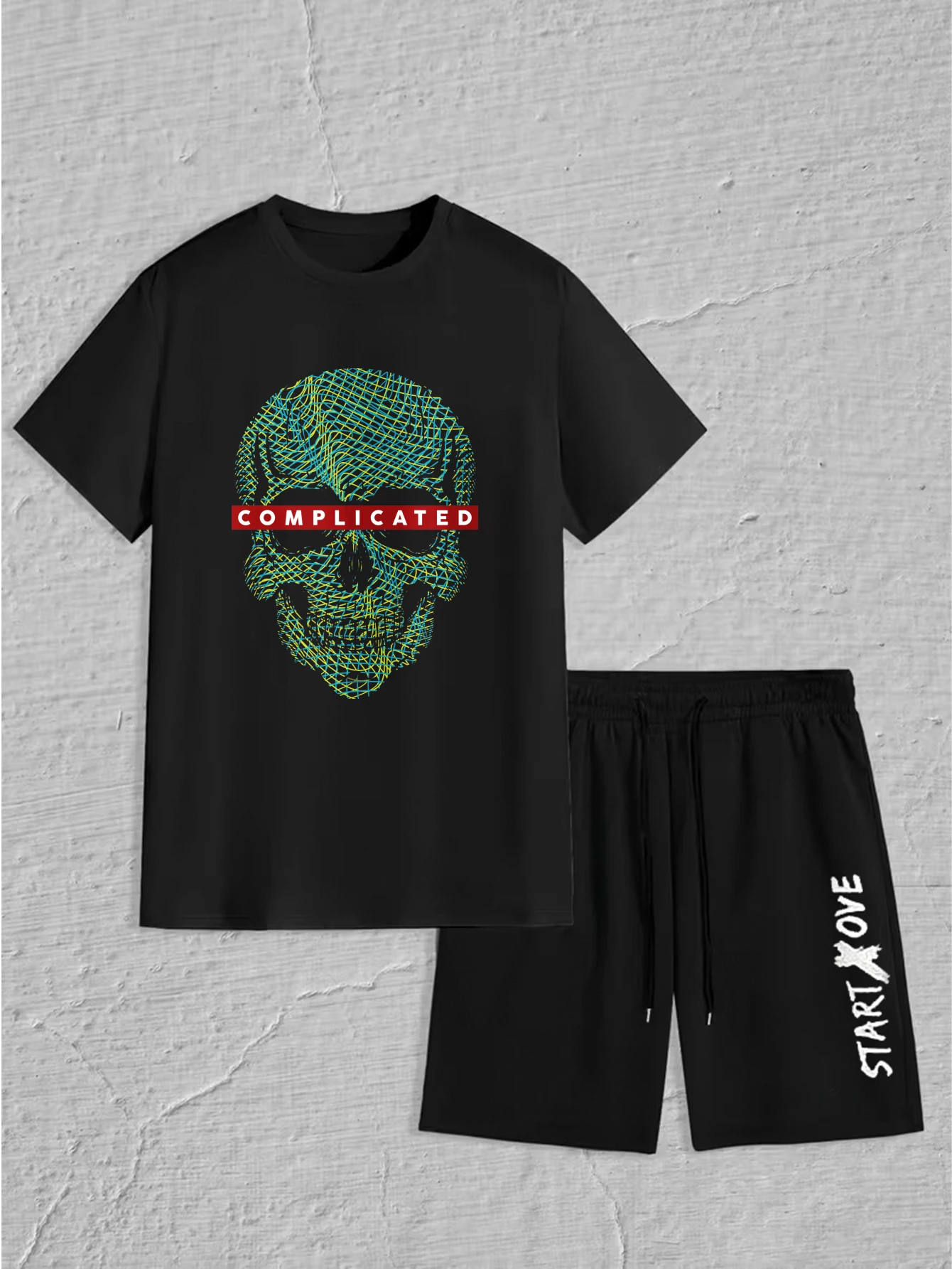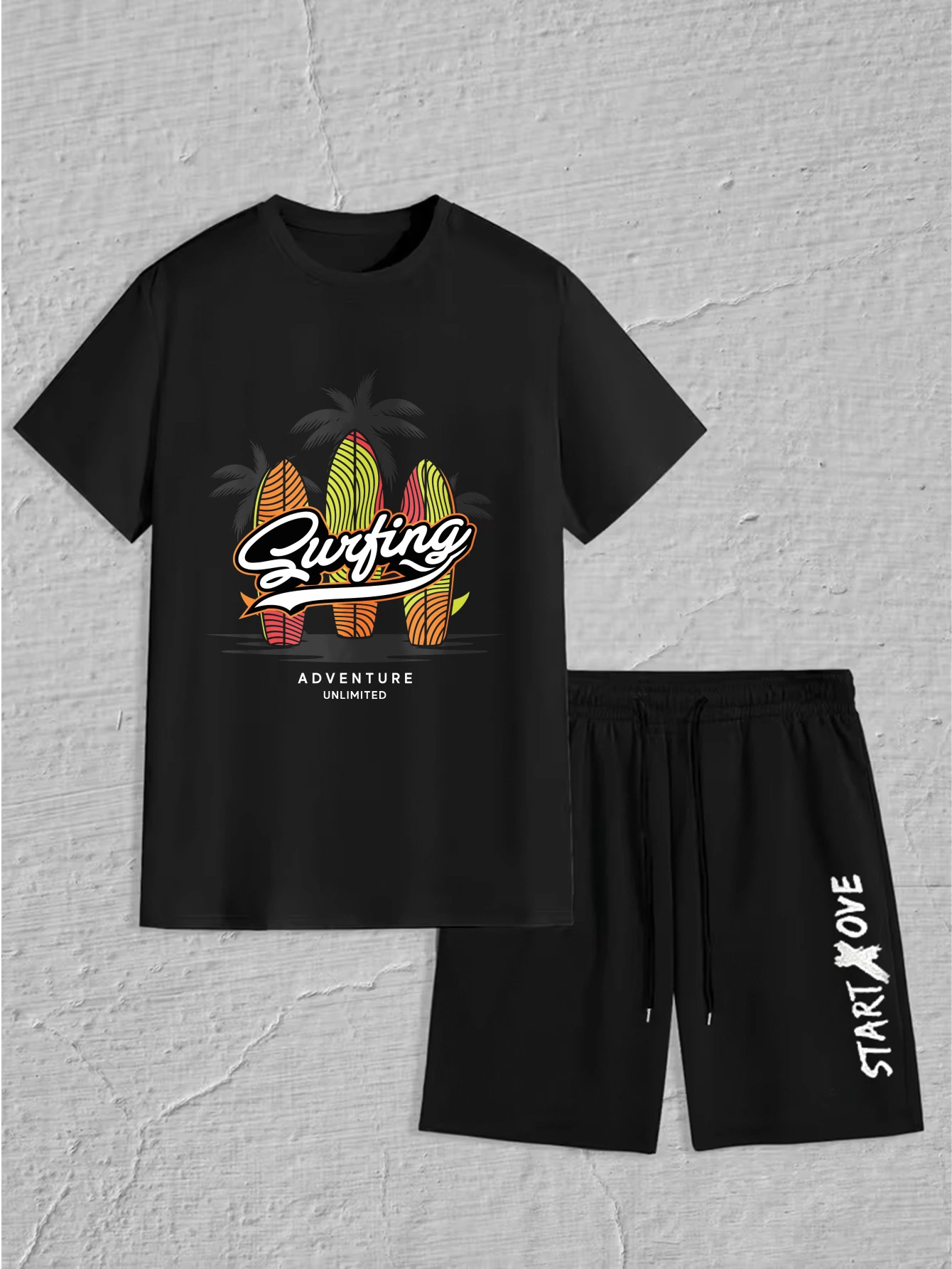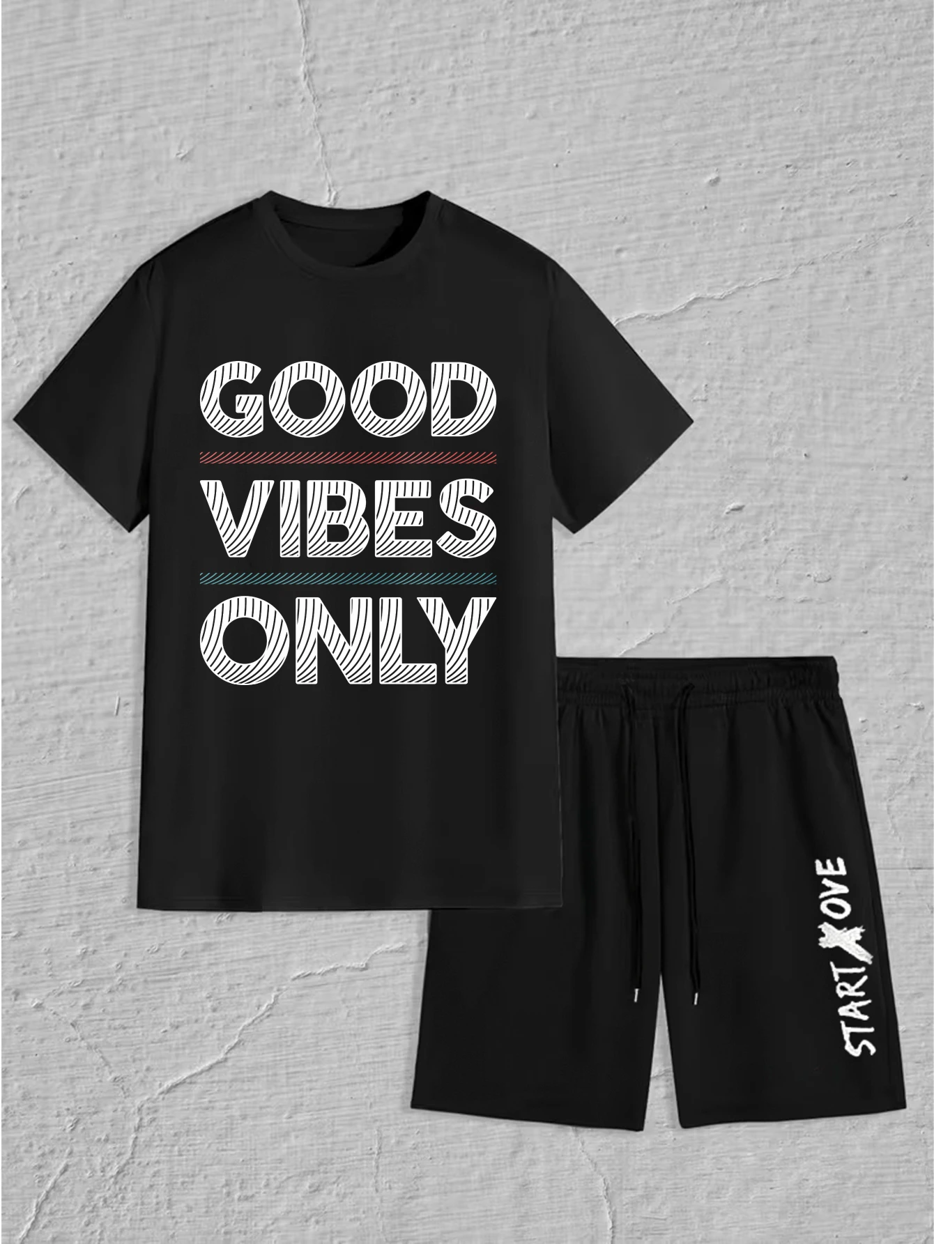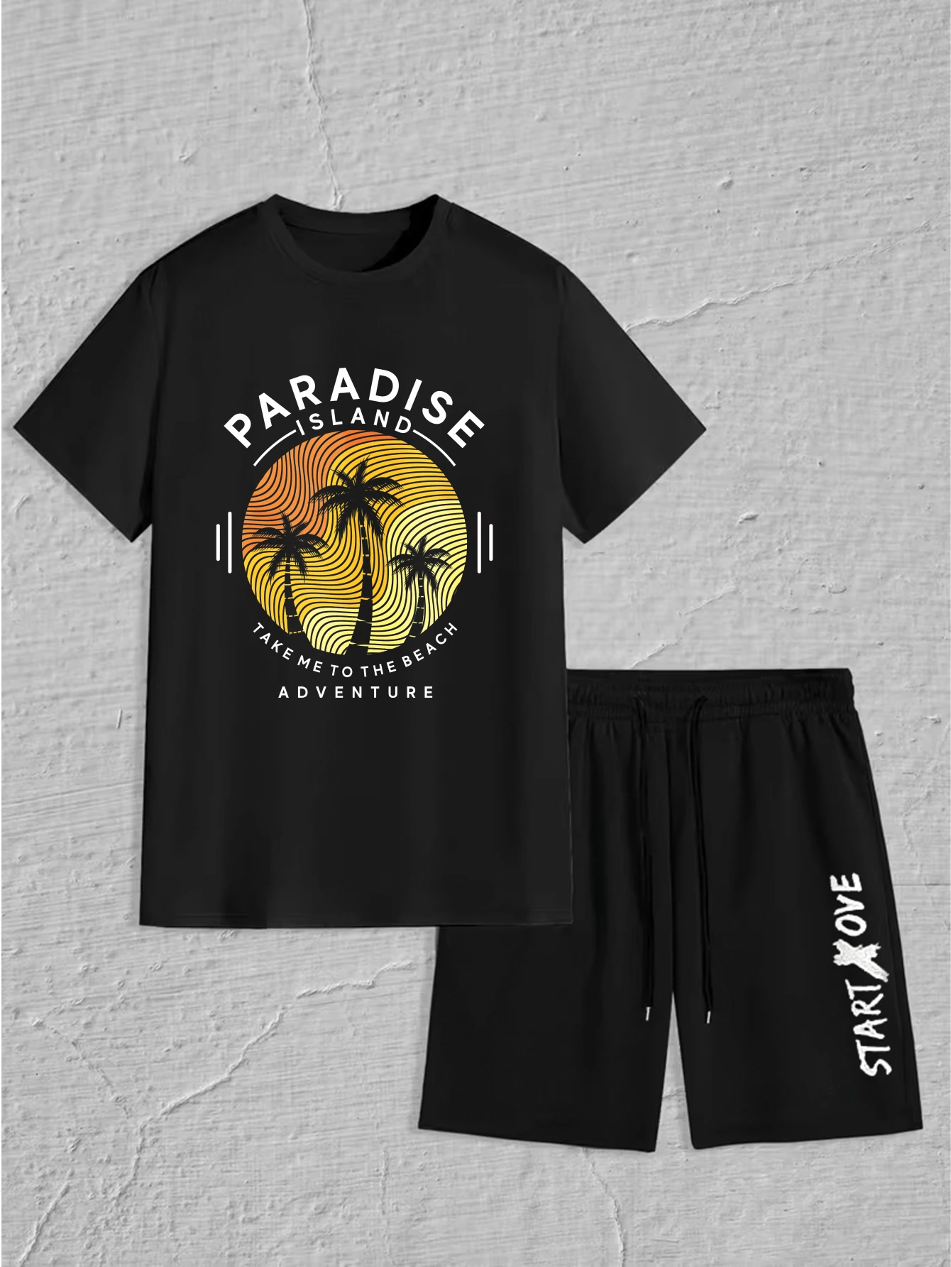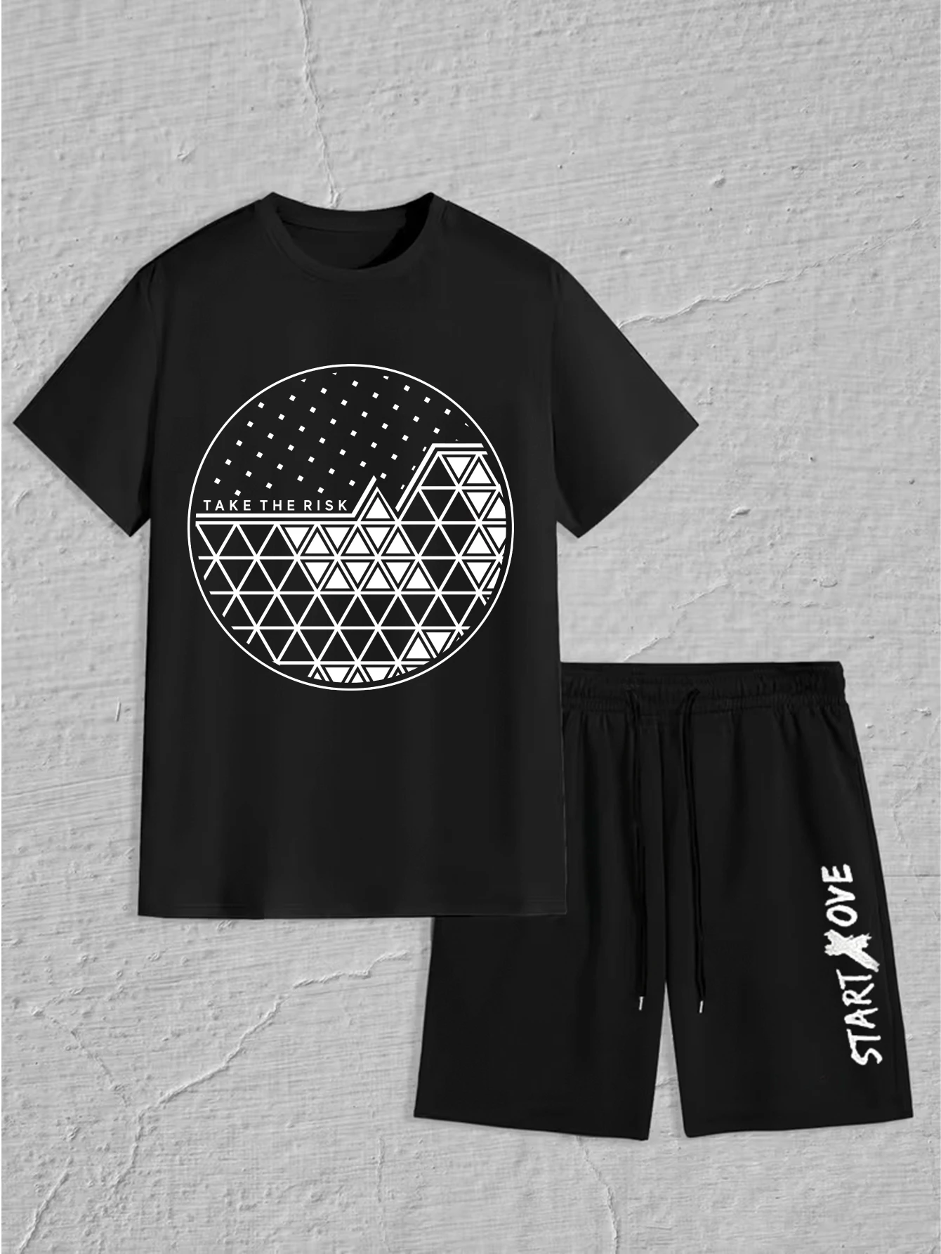 남성 세트 2025 여름 크루넥 신상 남성 세트 의류 세트 남성 의류 세트 스포츠 그래픽 프린트 수트