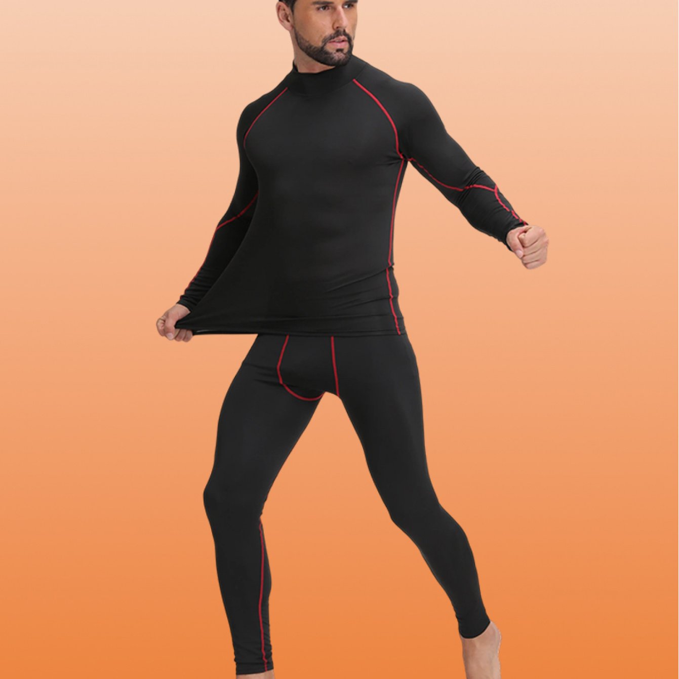 TEMU 2pcs 남성용 보온 압축 슈트 - 전신 & 보온성, 타이트핏 운동 세트 (셔츠 & 팬츠 포함), 사계절 체육관, 사이클링, 스키, 러닝 & 아웃도어 스포츠 기어, 고탄력 압축웨어|헬스복