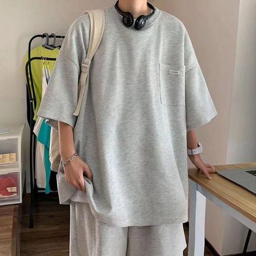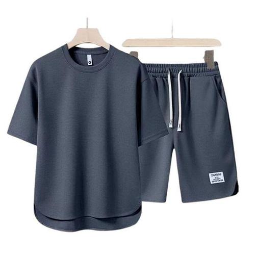 아톰닉 여름철 남성 패션 소매 티셔츠 반바지 세트 편안 시원 넉넉한 사이즈 여유로운 핏 가벼운 소재 외출 실내 트레이닝복 세트 루즈핏 빅사이즈