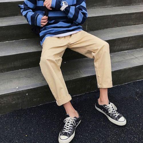[에이치플러스몰]롤업 캐주얼 면바지 배기팬츠 캐주얼 남성밴딩팬츠