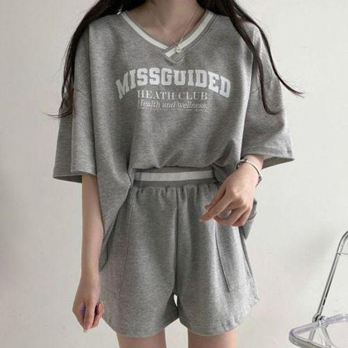 [에이치플러스몰]상하의 반팔 브이넥 캐주얼 이니셜 트레이닝 셋트
