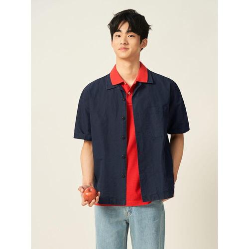TEMU 남성 여름 쿨링 솔리드 심플 반팔 패션 통근 셔츠 오피스 캐주얼 루즈핏 단추 데일리 5부 남방 슬림소녀 SLIM GIRL