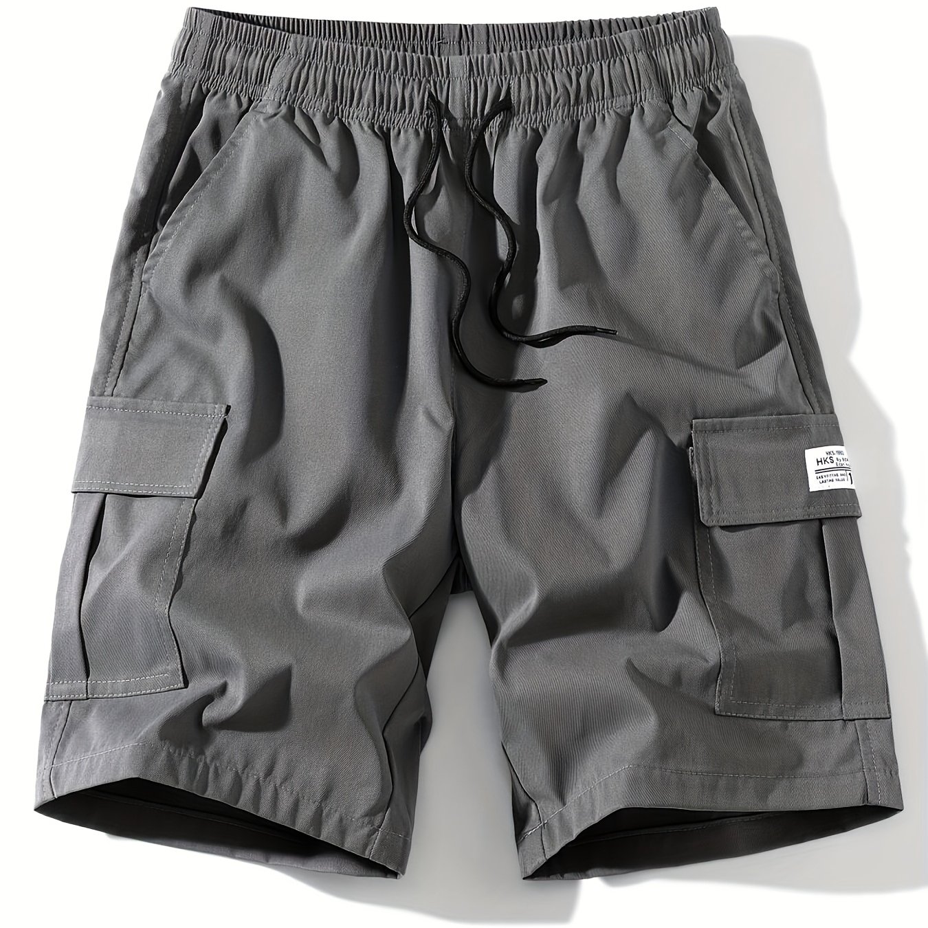 TEMU 남성용 카고 반바지 - 솔리드 컬러, 레터 패치, 플랩 포켓, 다중 포켓, 드로스트링 허리, 루즈 캐주얼 반바지