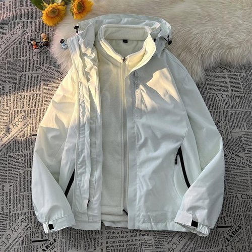 험블 스톤 아웃도어 윈드브레이커 후디 커플 스타일 하프 지퍼 플리스 보온 스탠드 칼라 웨이브 텍스처 캐주얼웨어
