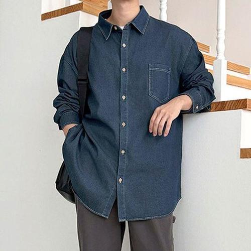 [에이치플러스몰]오버핏 데님셔츠 가슴포켓 빈티지 청남방 셔츠 자켓 캐주얼 청셔츠 데이트코디