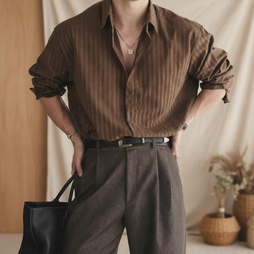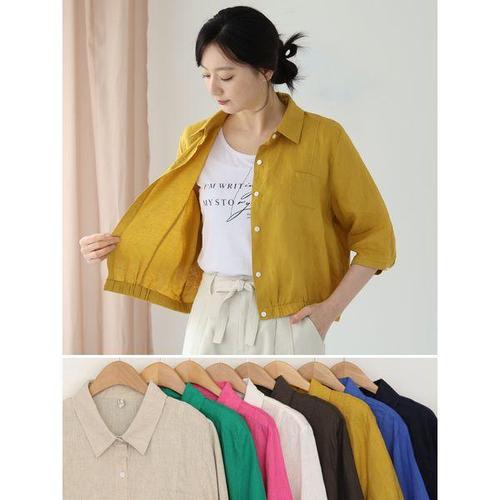 인디안 중년남성 봄여름 통기성 슬림핏 린넨(마)혼방 무지 긴팔 남방(셔츠) 5 M 2379