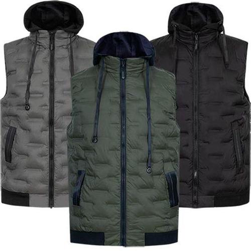 [디바옴므]겨울 후드 탈부착 심리스 경량 패딩 집업 조끼 하이넥