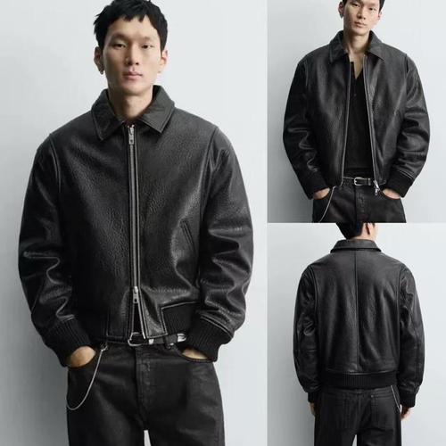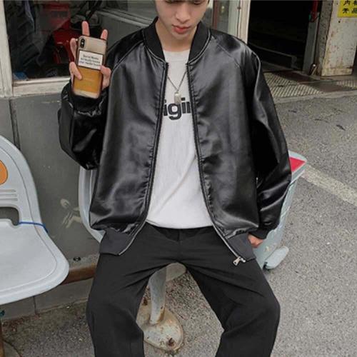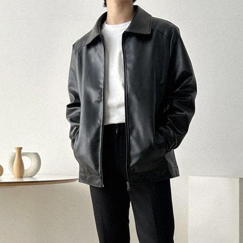 [셀럽하우스]남자 UJEL8411 외출 레더 대학생 주말 집업 룩 코디 자켓 가죽