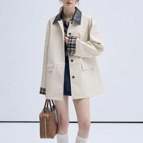 [비틀버드]레더 체크 소매 포인트 코트 JSD_1007252