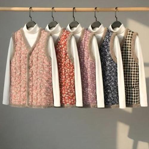 남녀공용 양털 누빔 꽃조끼 캐릭터조끼 패밀리조끼