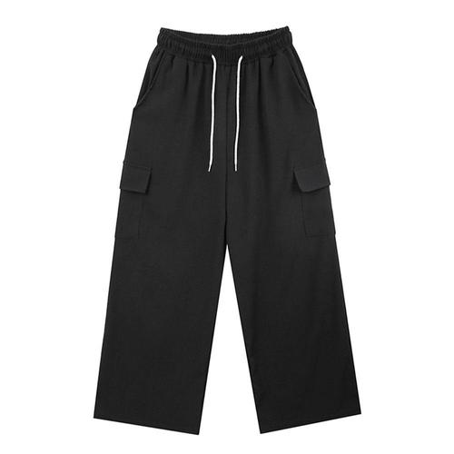 스포츠 바지 새로운 봄/여름 패션 브랜드 남성 힙합 통기성 코튼 린넨 솔리드 컬러 심플 드로스트링 와이드 레그 팬츠