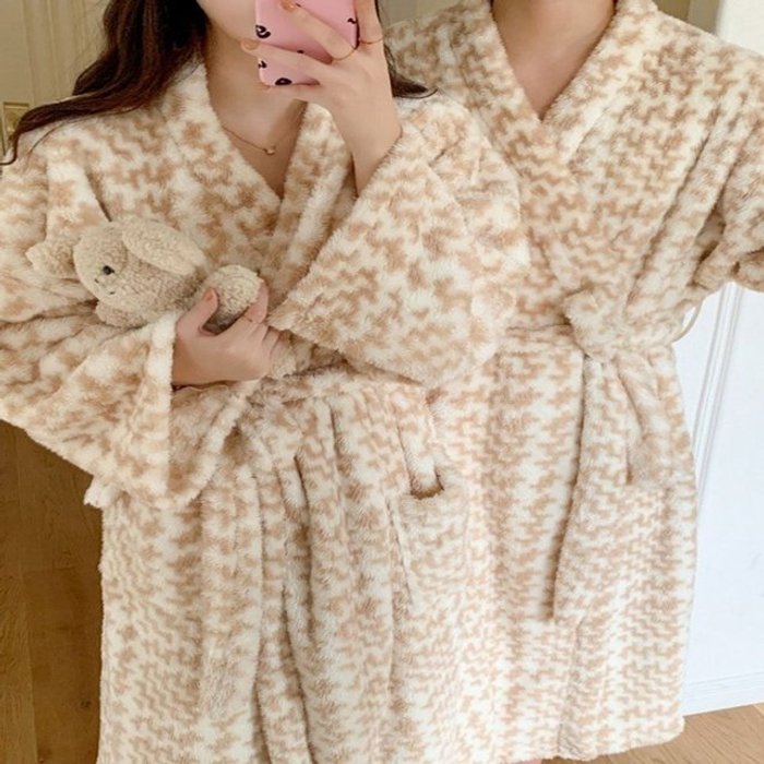 엄지척 남성 여성 포근한 극세사 수면 가운 샤워 로브 겨울 홈웨어