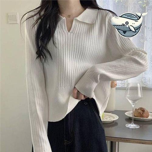 [에이치플러스몰]편안한 니트 카라티 일상 오피스룩 기본 티셔츠