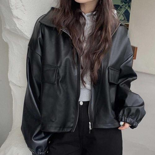 투웨이 크롭 레더 자켓 루즈핏 숏자켓 가죽점퍼 WFJKL25