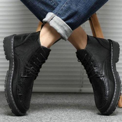 남성 소가죽 다이얼 컴포트화 중년 검정 운동화