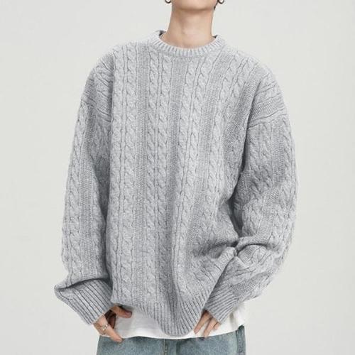 클래식 세미오버핏 꽈배기 라운드 니트 (DO539)