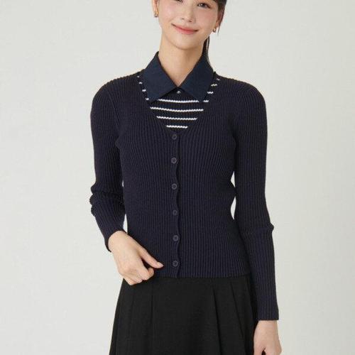[샤틴]스트레이프배색 카라탈착 니트가디건S244B967A25_JK