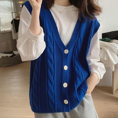 [오너클랜]인기상품 니트조끼 울 꽈배기 니트 베스트 조끼 브이넥 쪼끼 블루 [WFJC1CU_260320]