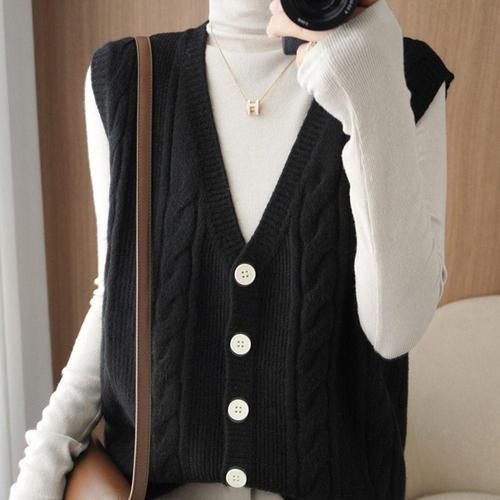 [오너클랜]인기상품 니트조끼 울 꽈배기 니트 베스트 조끼 브이넥 쪼끼 블랙 [WFJC1CS_260320]