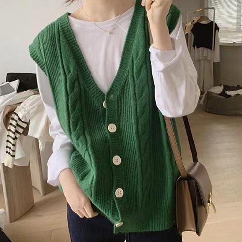 [오너클랜]인기상품 니트조끼 울 꽈배기 니트 베스트 조끼 브이넥 쪼끼 그린 [WFJC1CR_260320]