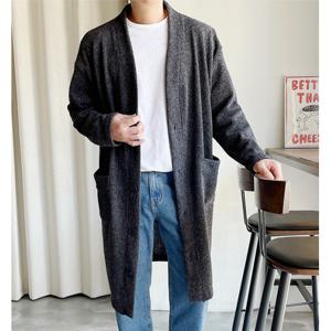 남자 봄 가을 롱 가디건 패션 얇은 니트 코트 루즈핏 스웨터 카디건 캐주얼 후드 가디건 재킷 LPC