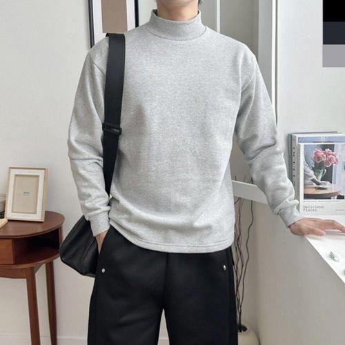 남성용 기모 면 반목 티셔츠 겨울용 보온 폴라 셔츠 WFLMFDM